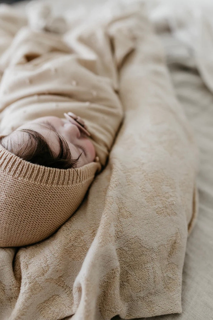 A soft seamless knitted bonnet made in 100% merinowool.