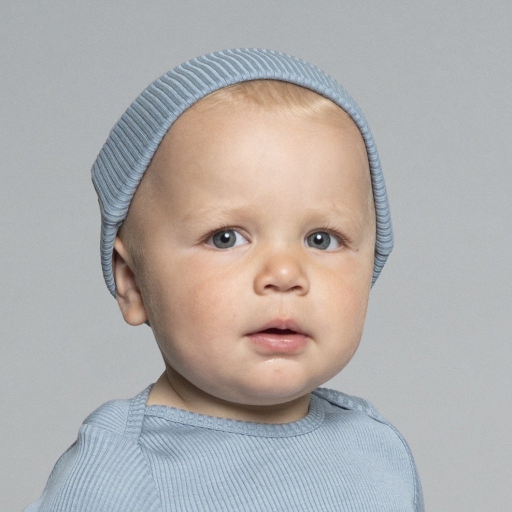 Double-layer rib hat in soft silk-cotton mix. Tight fit but highly flexible. This beanie fits perfectly underneath the bike helmet and is easy for small kids to take on and off themselves. For below 1-year olds, we recommend size 1-6Y and fold it once until it fits in full length.